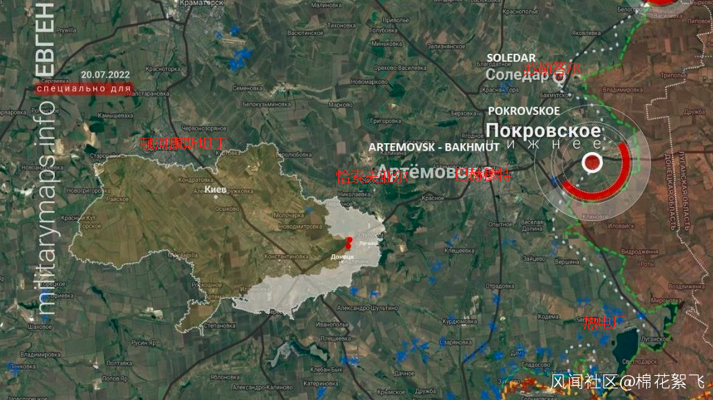 烏克蘭增兵塞弗爾斯克和巴赫穆特,因為他們被金主爸爸要去必須守住斯托維揚斯克,不然就會斷奶,所以要守住大門。但這2個地方都處於河谷底部,非常被動。只能退守城市西部的高地,對他們有利的是一條河流,南北向貫穿塞弗爾斯克和巴赫穆特。後期平推會有問題,不如現在在這個地方放放炮,藉助烏軍兵力很密集的情況獲得巨大的戰果。