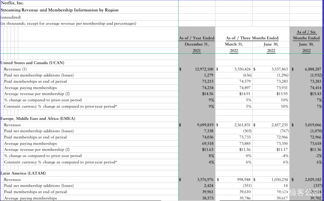 最受關注的是:奈飛本季付費用户流失 97 萬,低於市場預期值 200 萬,目前奈飛全球訂閲用户數約 2.21 億。