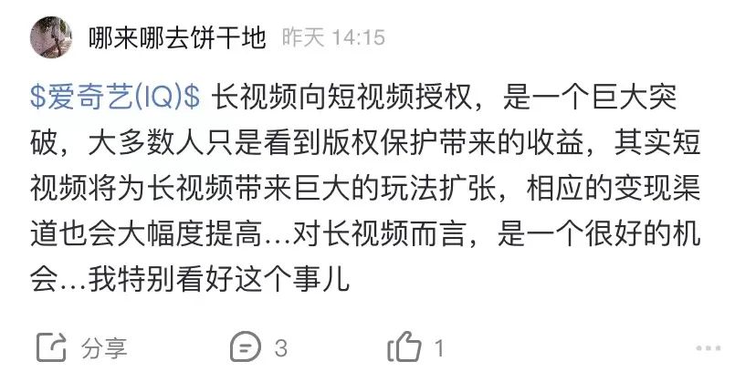 有愛奇藝投資人在雪球信心滿滿地表示:短視頻將為長視頻帶來巨大的擴張玩法,相應的變現渠道也會大幅提高。受與抖音合作這一利好消息的刺激,愛奇藝美股股價當天上漲近10%。