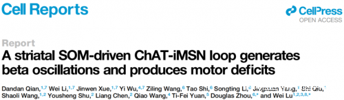 北京時間2022年7月19日晚23時,東南大學/復旦大學陸巍研究組與上海交通大學周棟焯(Douglas Zhou)研究組合作,於Cell Reports在線發表題為“A striatal SOM-driven ChAT-iMSN loop generates beta oscillations and produces motor deficits”的研究成果,對大腦紋狀體產生beta異常振盪的神經環路機制進行了解析。