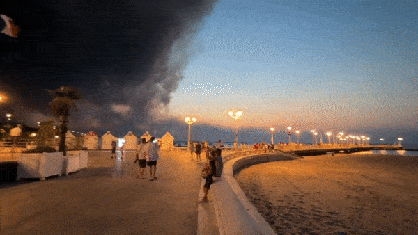 曾經寧靜美麗的海濱小鎮阿卡雄小鎮上黑煙蔽日,震撼又迷人的皮拉沙丘也是濃煙滾滾,消防車從中穿過,淨土不再。