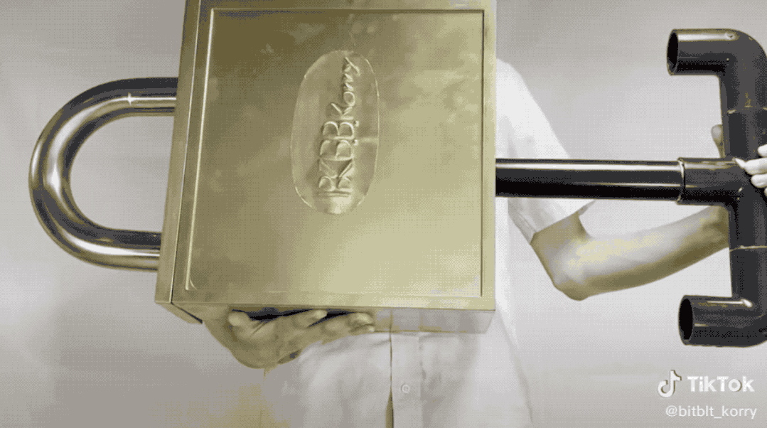 再看這個掛鎖包,BB 哥想着大家平時常用掛鎖給包防盜,於是就開了個腦洞 —— 包是用來裝東西、鎖是為了防止包裏的東西被偷。
