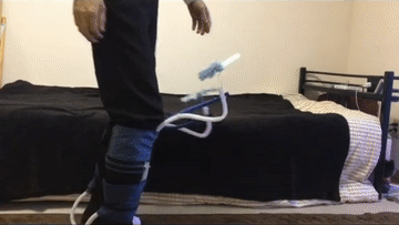 還有這個,BB 哥覺得夏天太熱了,出門沒有風扇可不行,也許是自己發明的掛鎖包太大,手拿不下風扇了,所以老哥就把主意打到了腳上。