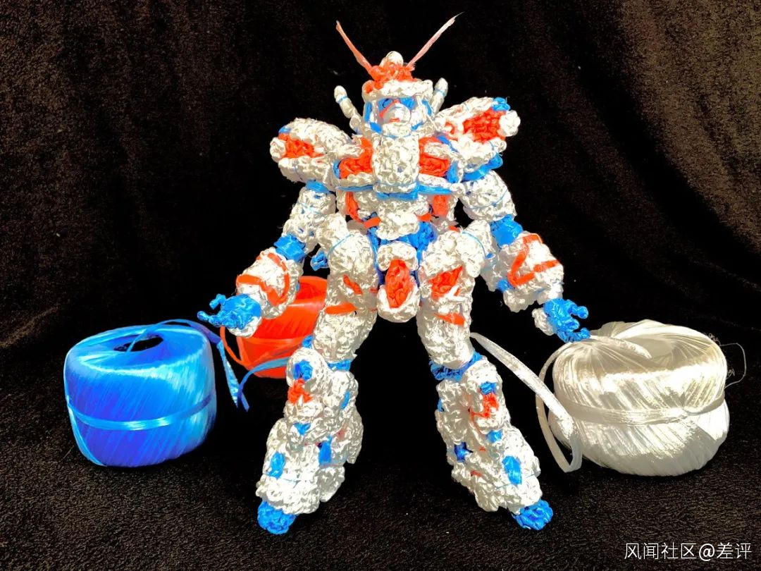 用塑料繩拼出來的高達,由於材料是聚乙烯,都被 BB 哥開除紙籍了。
