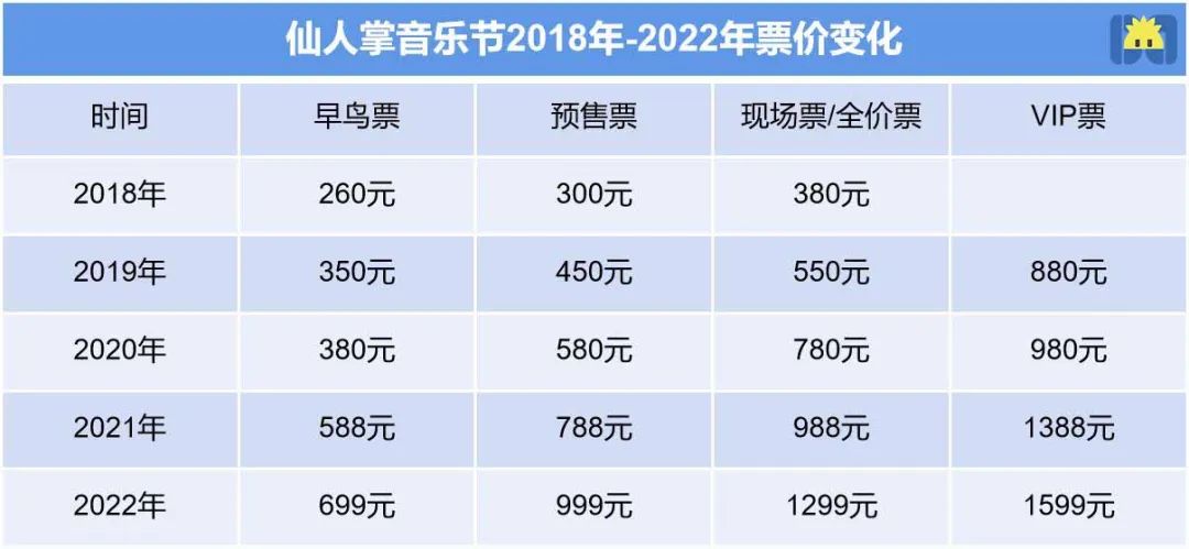 仙人掌音樂節五屆票價變化 / 開菠蘿財經制圖