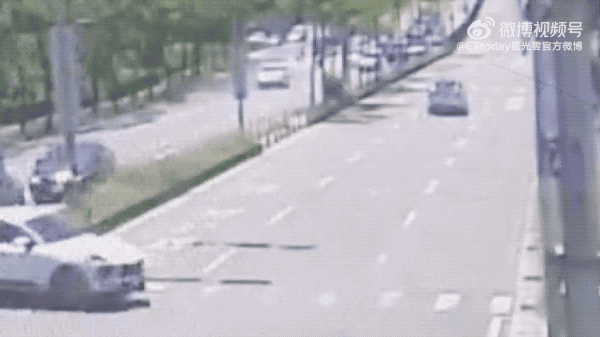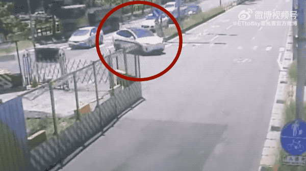 可是在11秒後,車輛因不明原因突然偏離車道,撞斷指示杆。