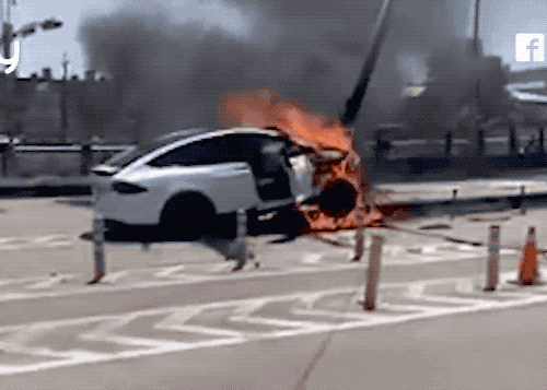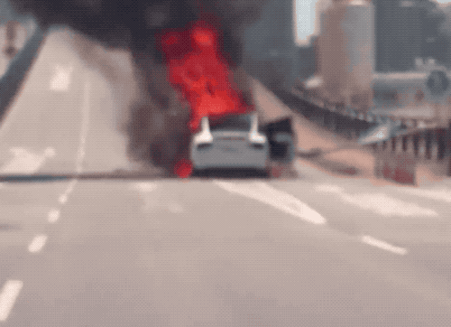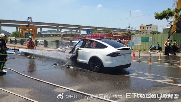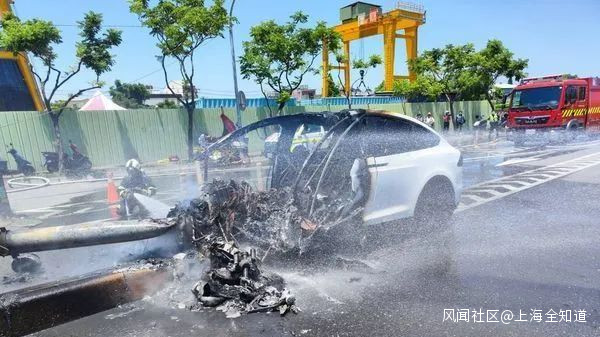 特斯拉車頭的火勢,不管是從後面看,還是從側面看,都是非常非常猛烈的。