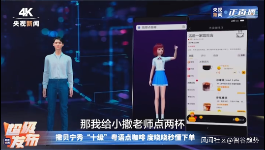 百度數字人“度曉曉”立刻聽懂了他的言外之意。一秒鐘之內,她就搜出了附近的咖啡外賣,並且按她對撒貝寧的性格、愛好甚至MBTI分析,選出了他喜歡的咖啡口味,就等着下單了。