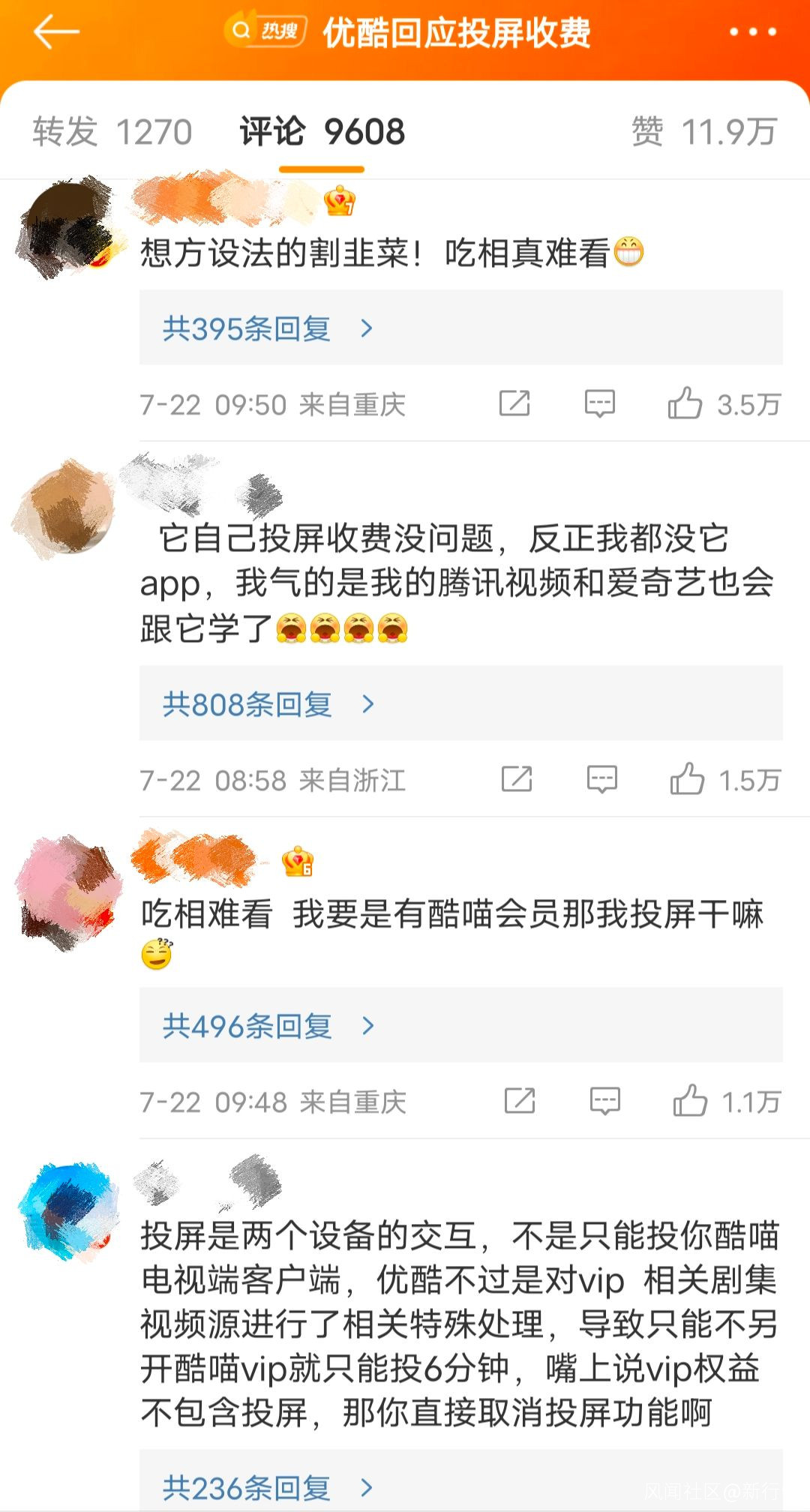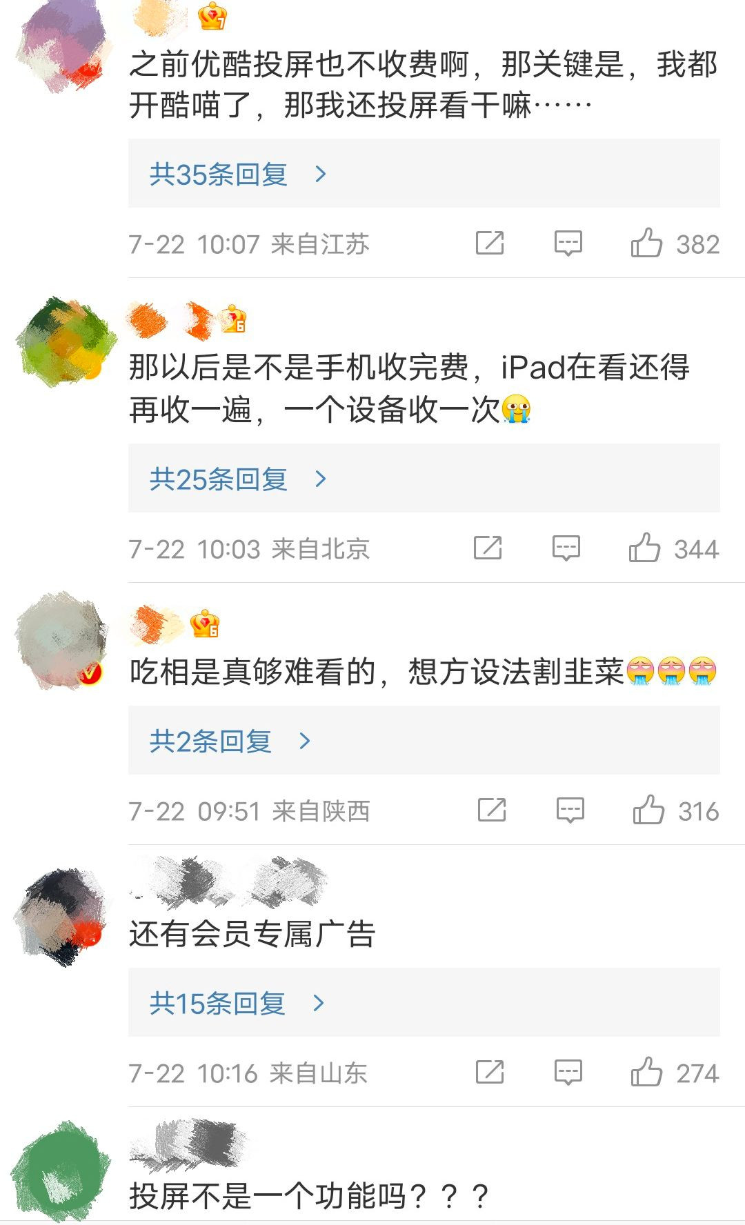 此舉迅速在網絡引起熱議。有網友認為,自己已經購買了會員,為什麼又要多花錢來使用投屏功能?