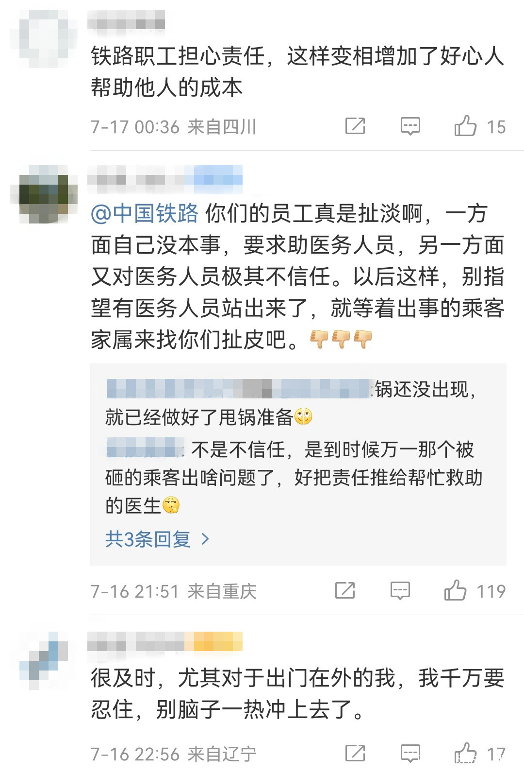 有網友直言,乘務員害怕擔責,怕出事的心理,變相增加了好心人幫助他人的成本。