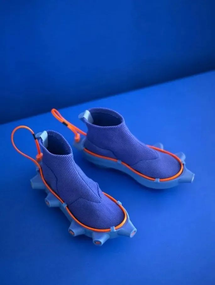 比如 USB 充電端口能讓人們使用鞋底內的便攜充電寶,在旅途中為設備充電。而充電寶本身可以通過鞋子後部的插頭充電,就連充電線也可以直接繞在鞋上。