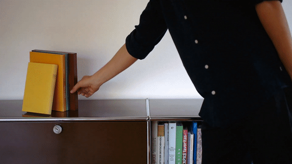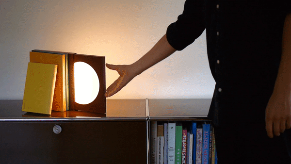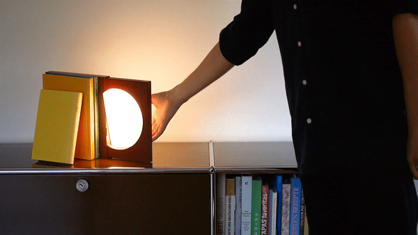 它像一本紅色封皮的經典書般直立在書架上,如果慢慢拉出來,裏面的圓盤就會開始發光,並越來越多地照亮周圍的書籍。