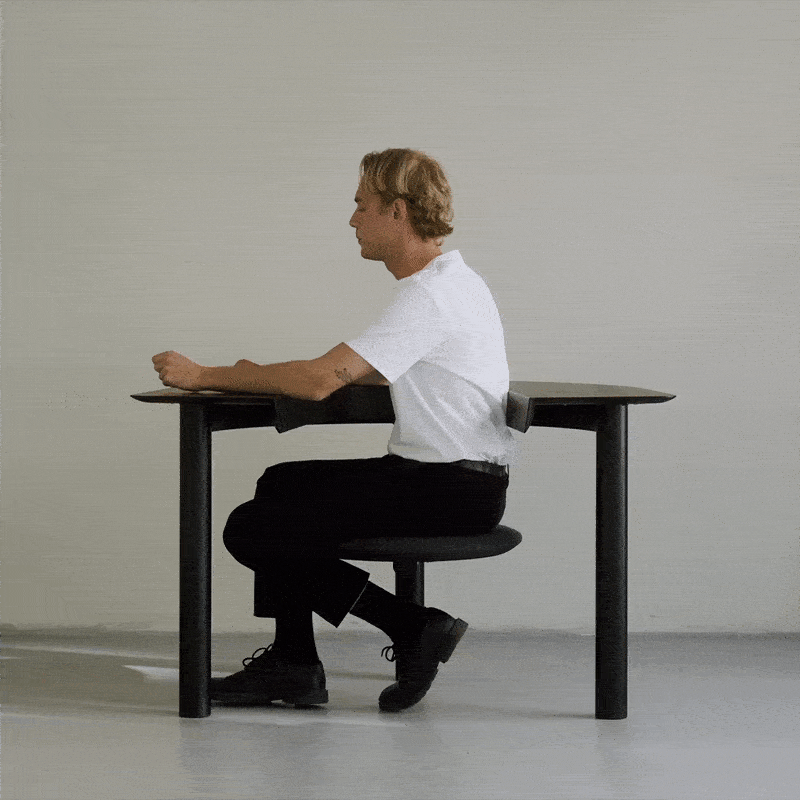 當人坐下時,桌椅的各個方面都能自由運動,通過不一樣的角度,將一個私密的辦公空間對外開放,反之亦然。