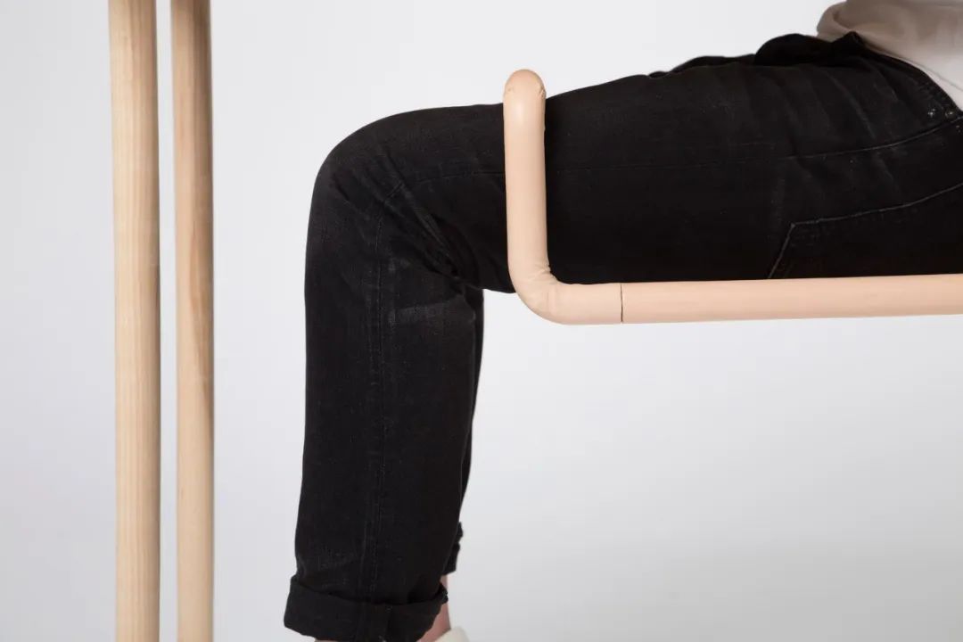 比如當你沒有坐在椅子上時,它就會掉到地上,你還需要彎一點腰來作支撐,你的身體也就成了椅子的一部分。
