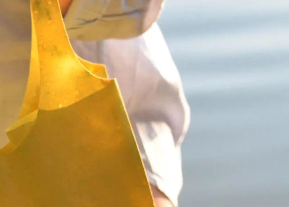 這個手袋可以溶於水中進行自然降解,甚至可以用來給植物施肥,使用壽命接近於一次性的普通紙袋。