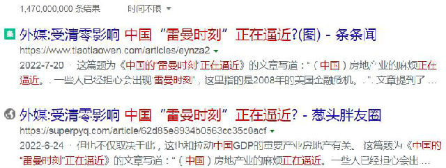 找到“有事做”,是近日有一篇題為《中國的“雷曼時刻”正在逼近》的文章,它在網絡空間廣為傳播,成為了時評界人士當前共同關注的一大焦點話題,即如果房地產市場危機持續發酵,將有可能成為誘發“一場大火”,從而導致中國陷入經濟衰退。