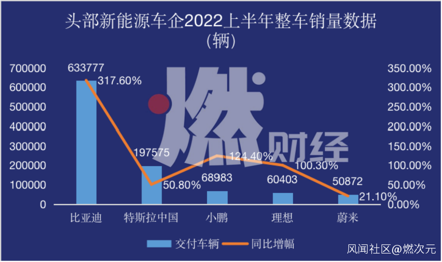 7月初,比亞迪公佈了2022年6月產銷快報。數據顯示,比亞迪2022年上半年新能源汽車銷量為64.14萬輛,同比增幅達到315%,反超特斯拉,一躍成為上半年全球新能源汽車銷量冠軍。