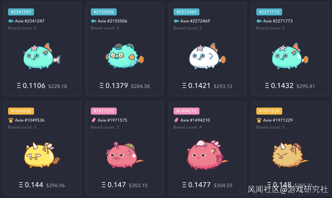 許多區塊鏈遊戲都需要玩家支付一定的“啓動資金”或“入場費”。以時下在線人數最多的P2E遊戲《Axie Infinity》舉例,這是一款類似於寶可夢對戰的遊戲,但玩家的“寶可夢”——Axies,都是要用加密貨幣購買的獨一無二的NFT。