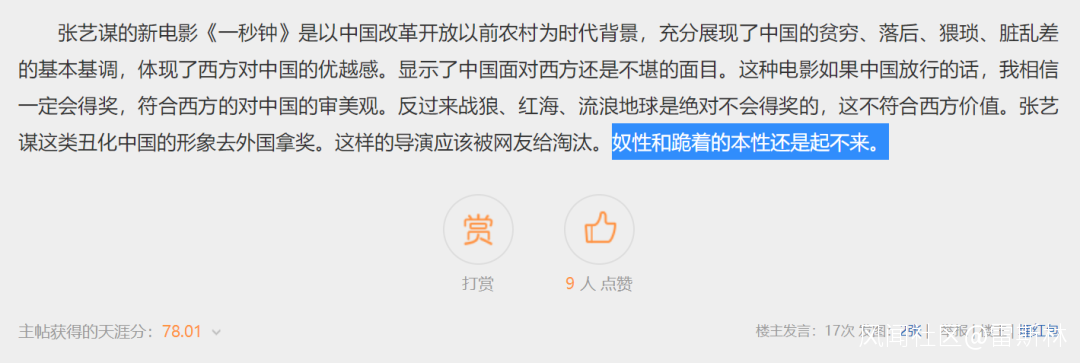 總之一句話,在他們看來,電影歪曲農村婦女,抹黑中國現實,無恥諂媚西方。