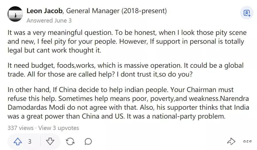 我在網絡上看到的那些繼續攻擊中國的印度人讓我感到噁心。