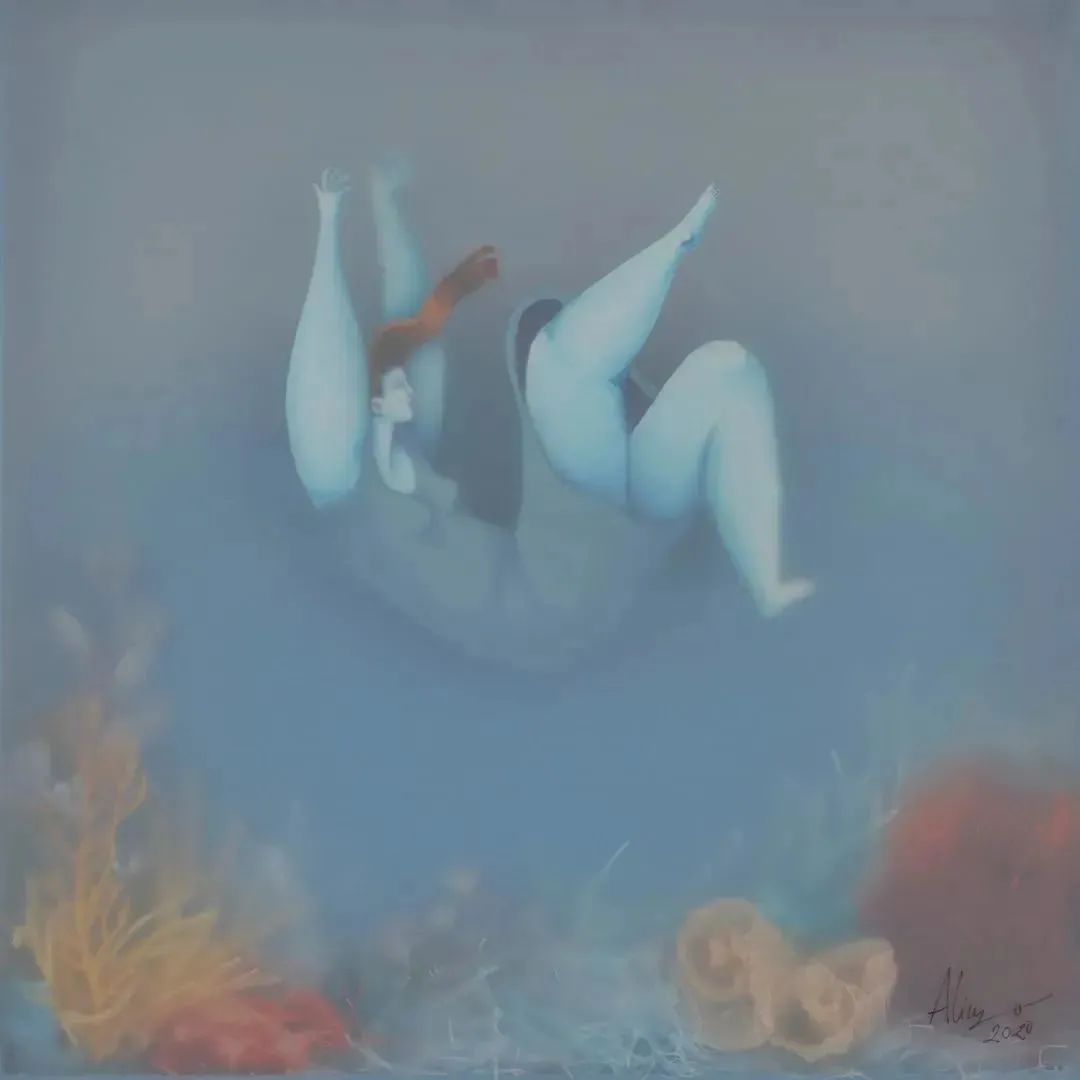 這種模糊過濾的效果帶給人一種在水下游泳的視覺效果,它完美再現了水中游泳的光學效果,模糊朦朧使得整個作品充滿詩意。