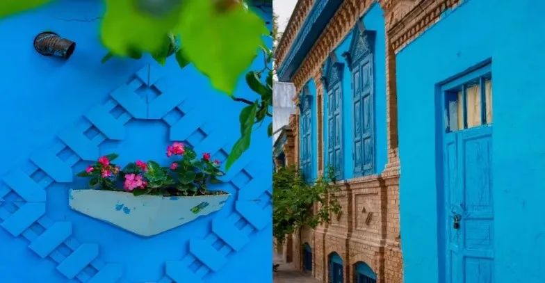“sinka”可以説是一個具有年代感的顏料,喀贊其也因此成為了一個獨特的存在——在維吾爾族傳統民居上巧妙地使用藍色來展現伊犁人對生活的追求和嚮往,也承載很多人時代回憶。