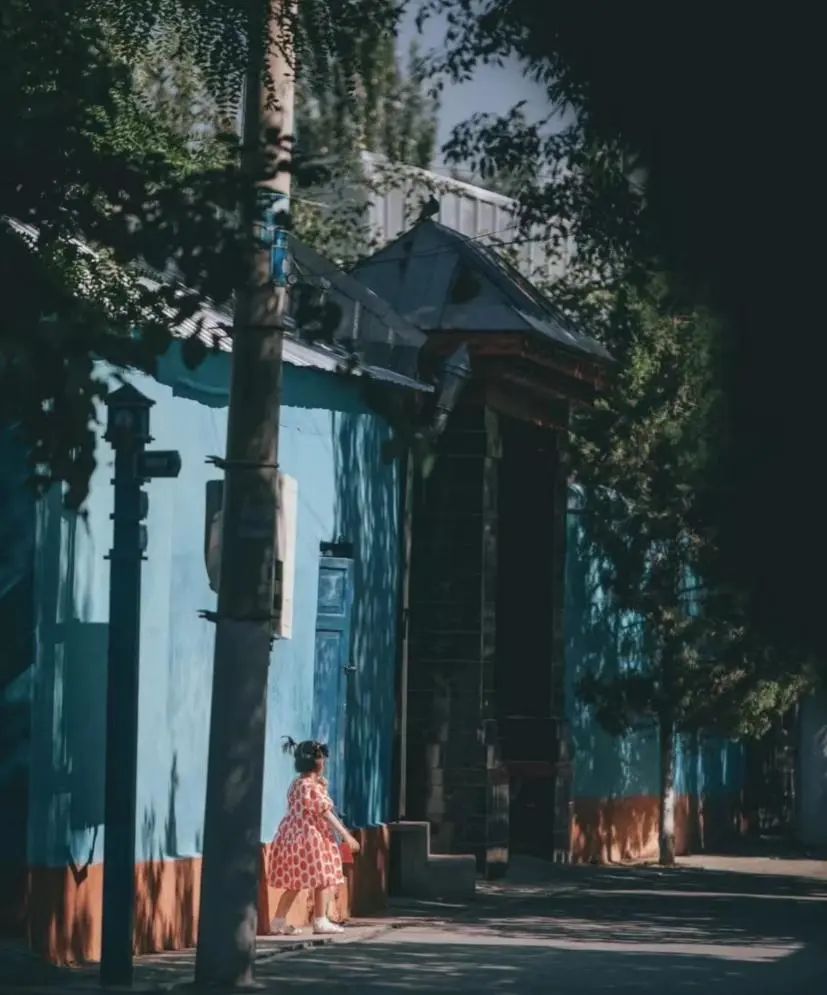 走進伊犁街的街道,深邃的藍映入眼簾,那是專屬於伊犁的色調——伊犁藍。
