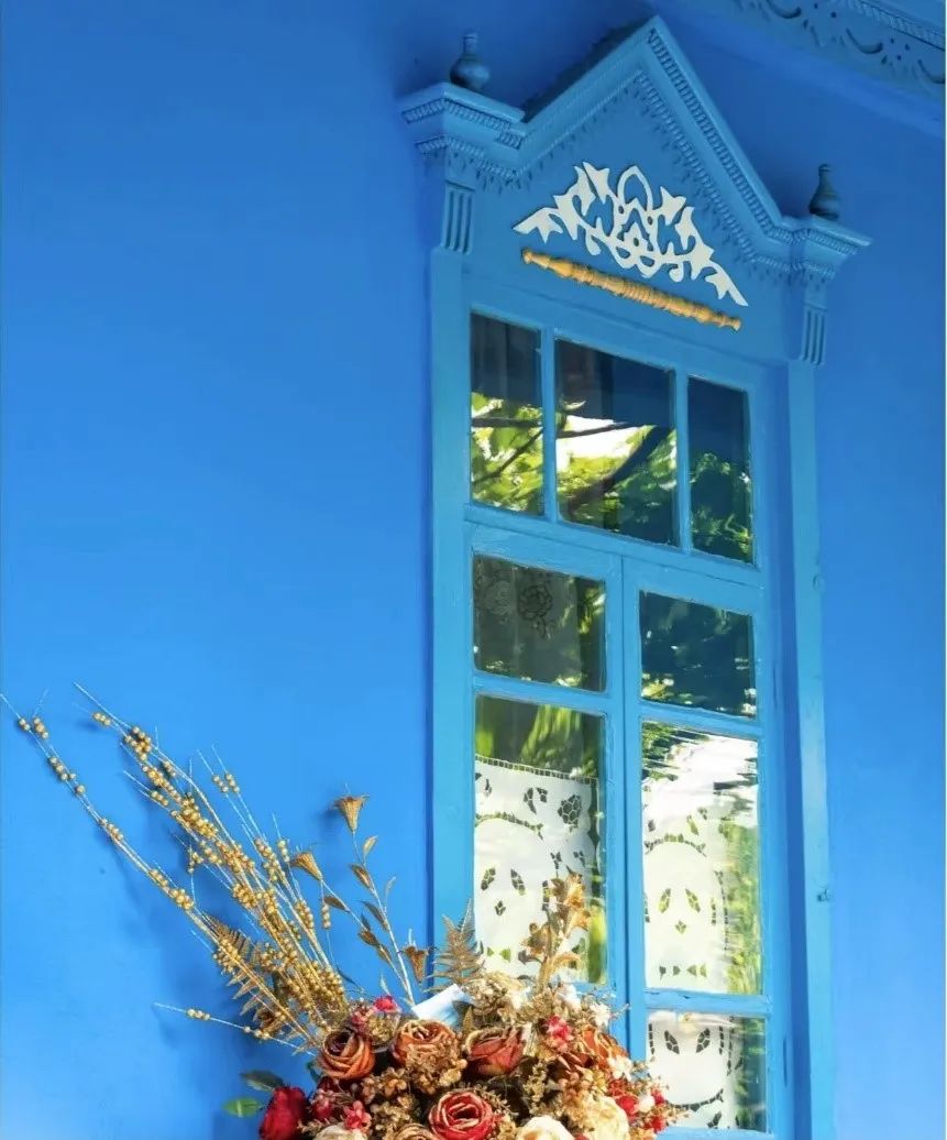 藍色在此不僅是伊犁維吾爾民居門窗裝飾的主色調藍色的門、藍色的窗、藍色的小院,透露着寧靜恬淡的生活氣息,住在這裏的一個個有趣的靈魂在借顏色表達着自己的生活態度。