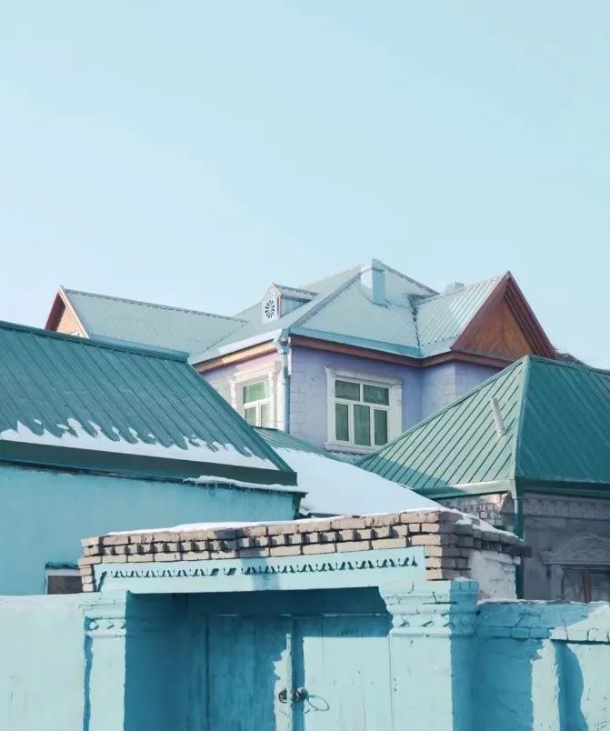 當多重風格相結合的民族建築與代表着寧靜、温柔、乾淨的藍色相互映襯時,就此形成了別具一格的北疆人文景觀。