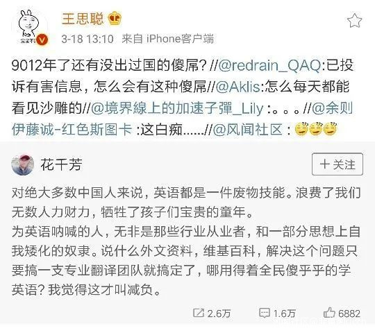 但當他説:“9012年了,還有沒出過國的傻X?”