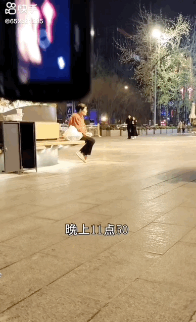 田斌碰見過一個穿橘色毛衣的阿姨,坐在街邊的花壇發呆,旁邊放了一袋饅頭。他給阿姨拍了張照片,問她在看什麼?她説,燈很漂亮。阿姨告訴他,她做了七八年的洗碗工,她的兒子還沒結婚,想賺錢給兒子在西安買房。她伸出雙手,手掌起了很多繭,皮膚全都裂開了,“抹點藥就好了”,阿姨説。