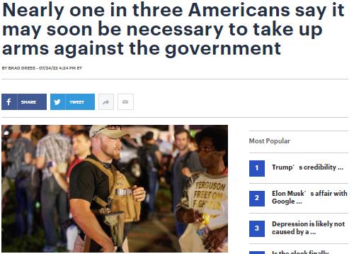 結果顯示:大多數米國人認為米國ZF是腐敗的,近三分之一的米國人表示可能很快有必要拿起武器反抗ZF。