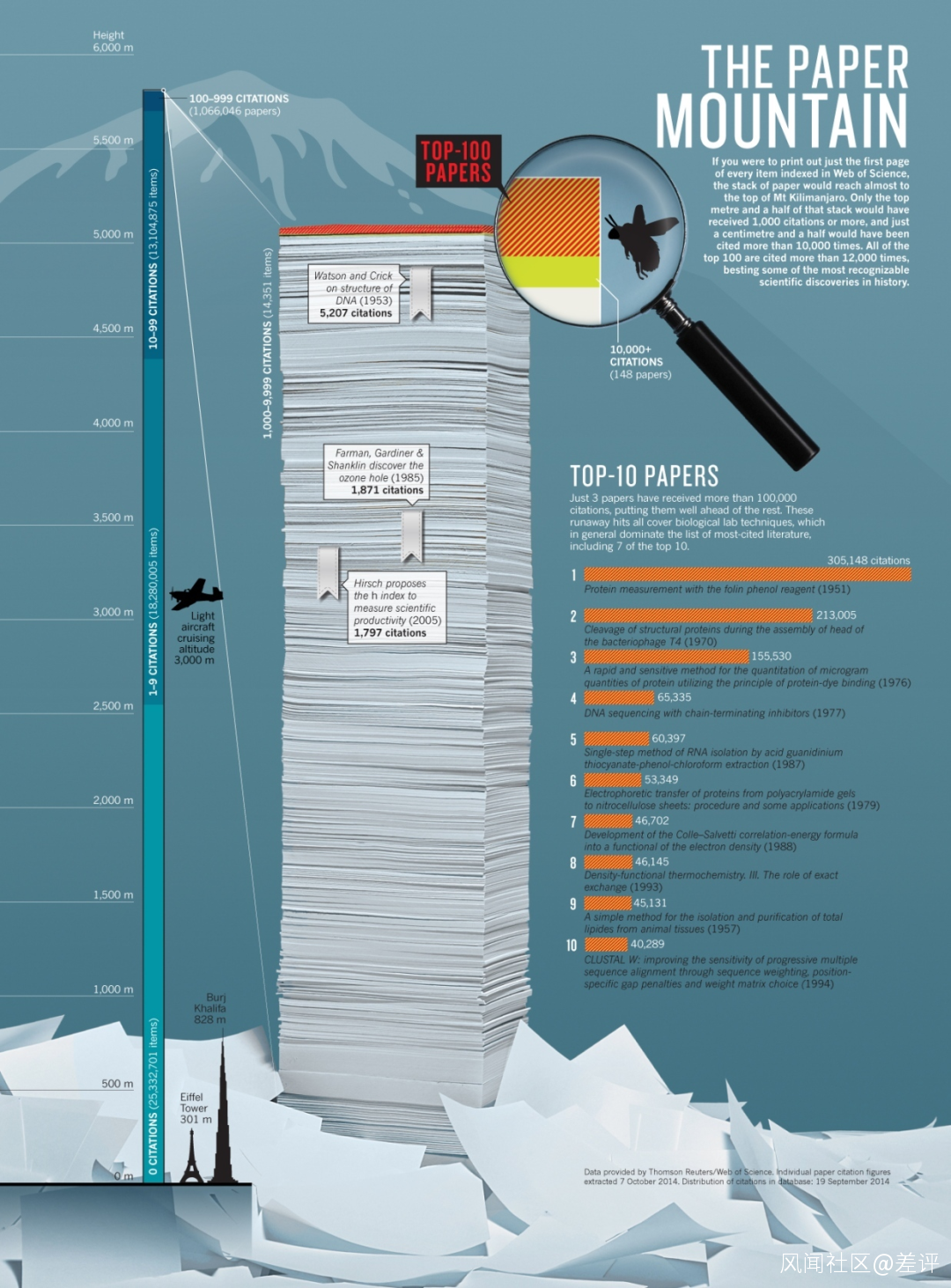 這麼説吧,Nature 就曾統計過,在全世界發表的近 6000 萬篇論文中,被引用次數達到 1000 以上的,只有 15000 篇不到。