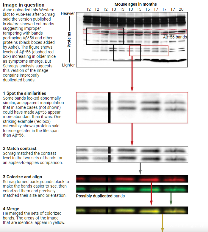 最後追根溯源,發現了 2006 年那篇 “ 奠基 ” 文章,和他們之後的 9 篇論文裏關於 Aβ*56 的圖像,可能都是 PS 的。