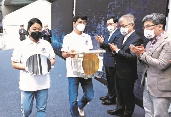 三星電子從2000年代初開始研究GAA晶體管結構。三星電子的3納米芯片批量生產比業界領頭羊的台積電(TSMC)領先一步。繼存儲器領域之後,三星電子又在晶圓代工領域奠定了第一的基礎。圖為當天相關負責人正在公開3納米晶圓。
