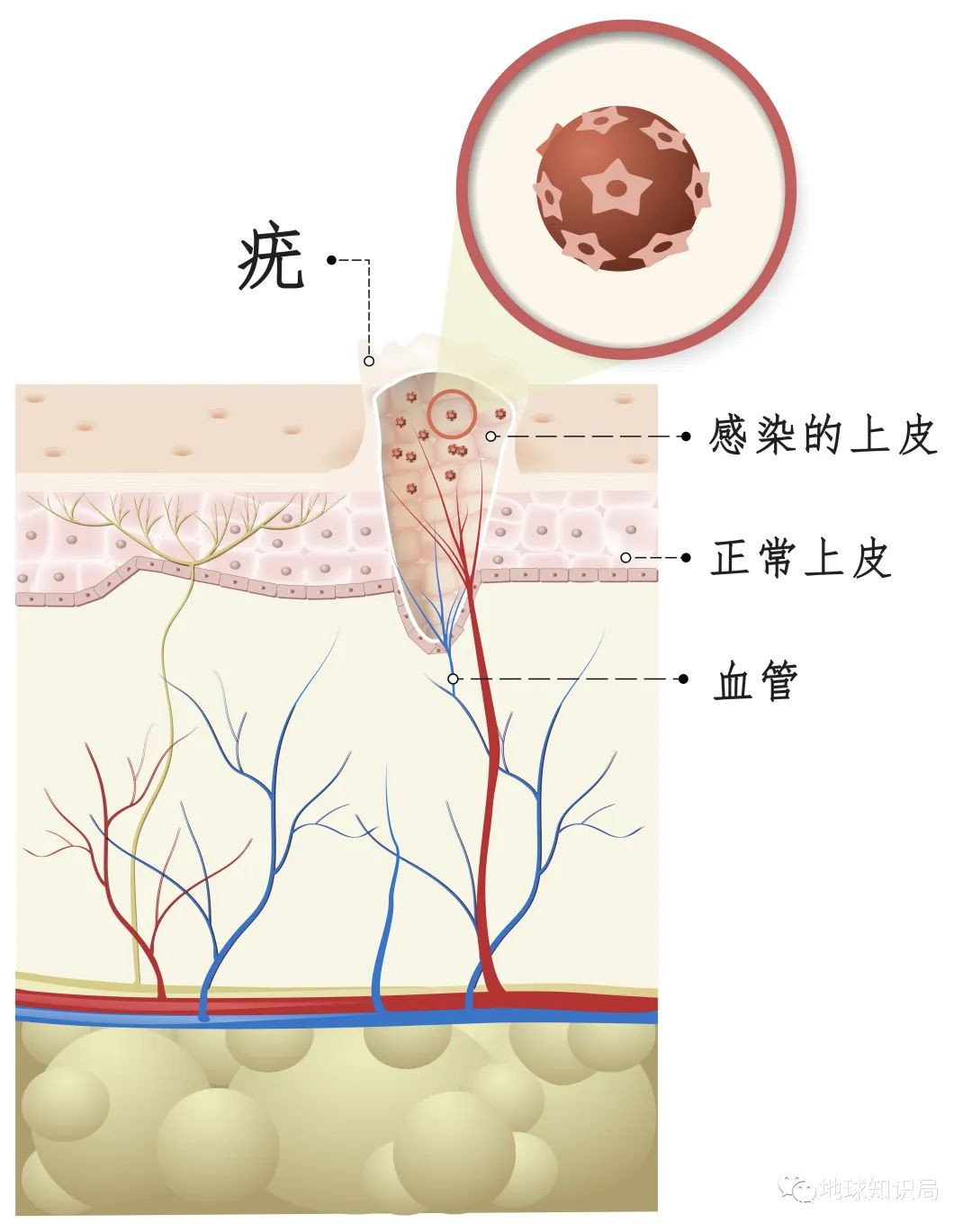 直到1949年,美國皮膚病學家施特勞斯領導的研究小組使用電子顯微鏡觀察到了疣體中的病毒顆粒,並確定這是導致疣的原因。