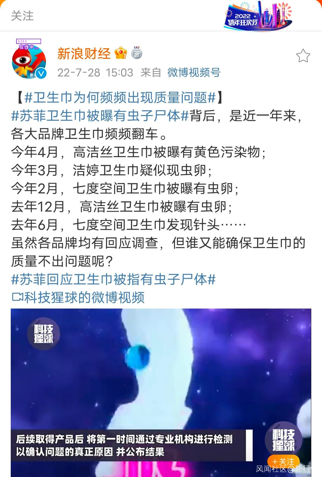 又一衞生巾品牌出事,蘇菲衞生巾被曝有蟲子屍體_風聞