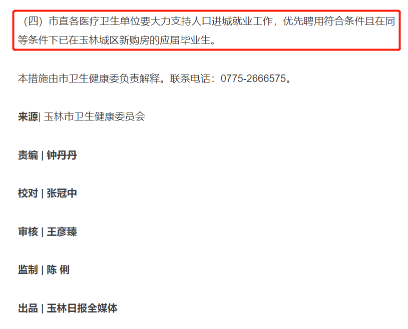 這麼看來,玉林衞健委優先錄用購房畢業生,都是被其他兄弟部門卷出來的結果。