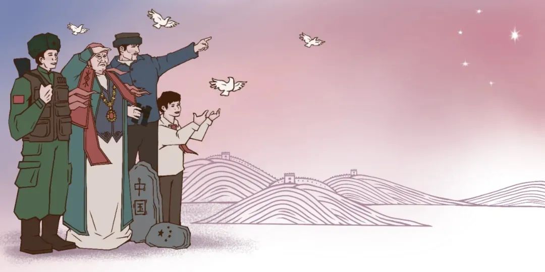 比如祖國的女兒布茹瑪汗·毛勒朵在祖國西陲,將“中國”二字一遍遍鑿於邊境的石頭上,創造出無一例人畜越境的守邊業績。