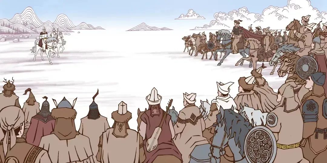 隨後他彙集了40位勇士、團結了周圍的14位汗王為維護人民安寧而奮起抗爭,被擁戴為一代汗王。