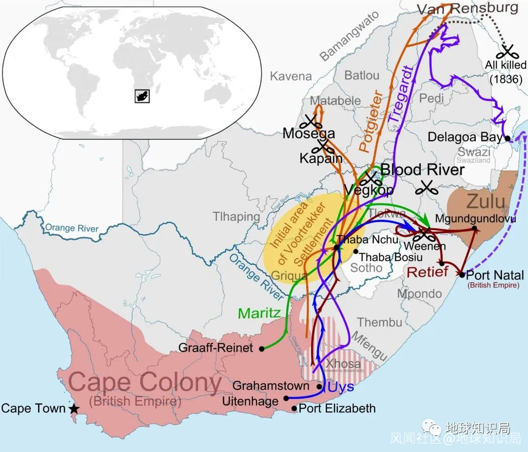 然而,覬覦南非這片土地的,不止荷蘭一家。在歐洲,孤懸海外的大英帝國崛起了,英國人不斷開疆拓土,其殖民地慢慢遍佈全球。