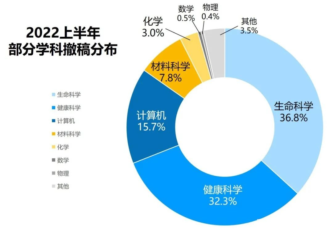 有560篇屬於盜版會議的論文合訂本被撤回,包羅萬象啥都有,此處不納入統計;學科分類以網站標註及期刊屬性為準,有些論文為交叉學科產物,處理為各學科計0.5,各打50大板;以上數據僅為個人統計,不代表任何官方結論,僅供粗粗參考。感興趣的朋友可以自行去網站查詢。