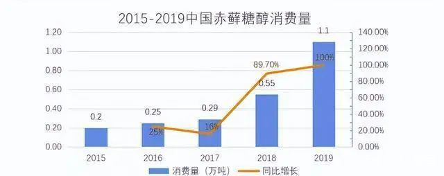 國內赤蘚糖醇的消費量直到最近幾年才開始有了爆發式的增長