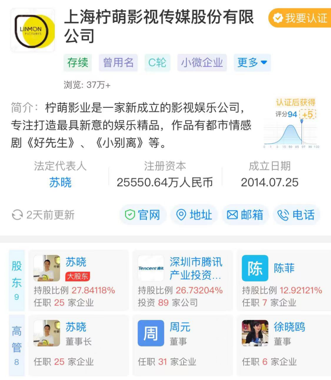 **而檸萌影視的四位聯合創始人,均來自於東方衞視。**其中,創始人蘇曉曾擔任SMG東方衞視副總監。爆款劇《小歡喜》《三十而已》的標配,就是騰訊視頻網播+東方衞視上星。
