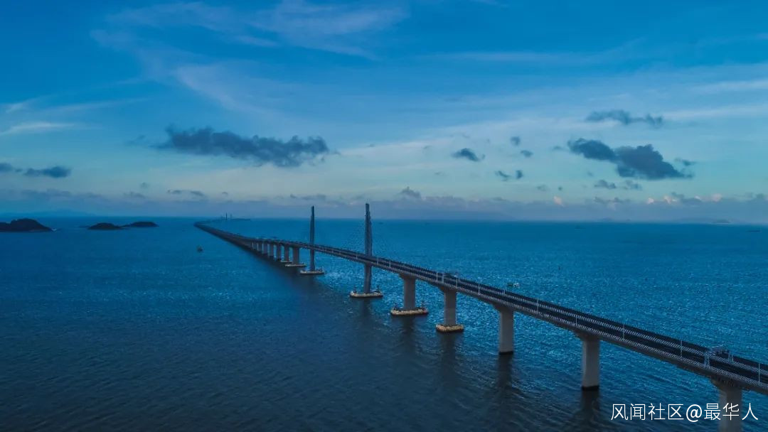 這座連接香港、廣東珠海和澳門的橋隧工程,全長55千米,宛如一條巨龍橫卧在伶仃洋海域。