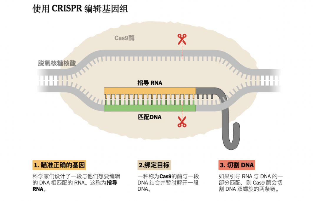 當時,微生物學家在細菌體內發現了一段特殊的DNA片段,後被稱為CRISPR。在和病毒的鬥爭史中,細菌進化出CRISPR-Cas9系統,能把入侵的病毒基因從自己的基因組上切除。