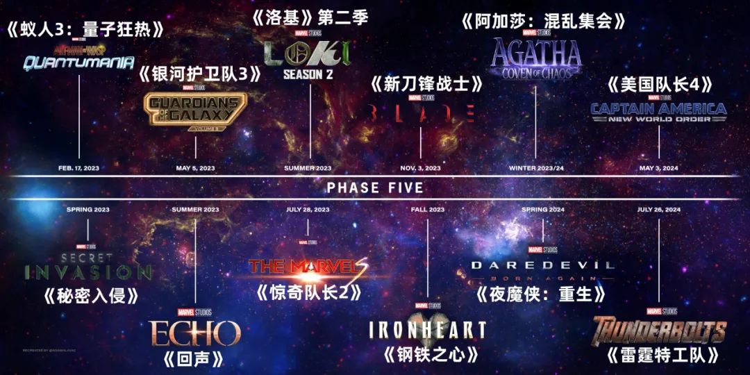 從《蟻人3:量子狂熱》到《雷霆特工隊》,為第五階段,共13部作品。