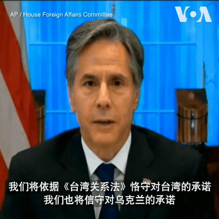 ▲美國國務卿布林肯於2021年9月在眾議院答覆質詢時,將烏克蘭和台灣相提並論,妄稱美國會履行“與台灣關係法”對台灣的承諾,也會履行對烏克蘭的承諾。