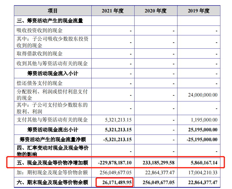 投資活動產生的現金淨流出2.2億元。招股書稱,投資活動現金淨流出主要是由於報告期末理財產品未贖回,當年購買理財產品現金淨流出2.15億元。2021年正是金智教育衝刺科創板的關鍵期,大筆購買理財產品不禁讓人好奇,金智教育真的需要IPO融資嗎?