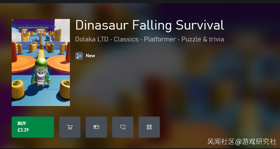而這款遊戲的開發商Dolaka Ltd,實際上是一家倫敦的個人公司,它的“作品也”不止“戰神”。在這個遊戲推出兩天後,又在Xbox Creators Collection上架了一款名為《Dinasaur Falling Survival》(恐龍墜落生存)的遊戲。和“戰神”一樣,它也脱胎於我們熟悉的遊戲。